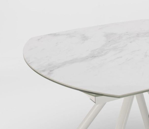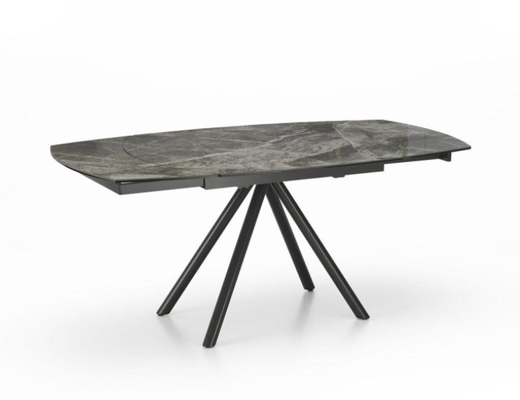 Tavolo allungabile con base e struttura in metallo verniciato, top in ceramica.