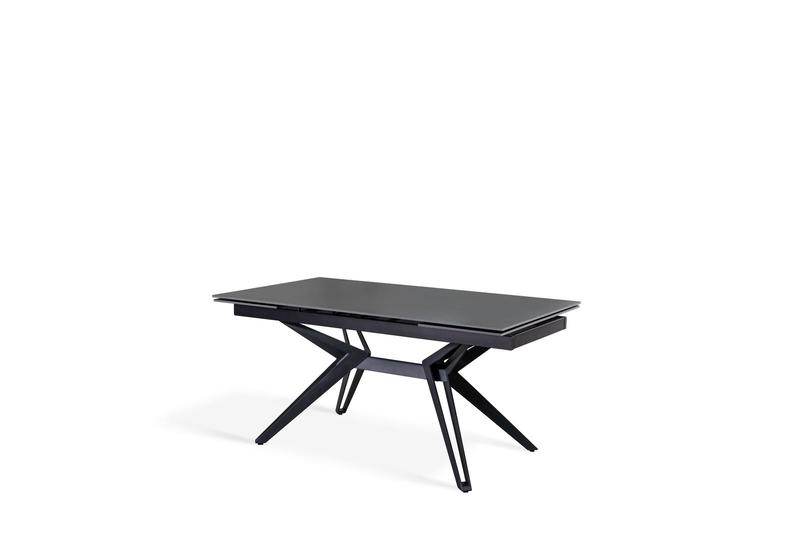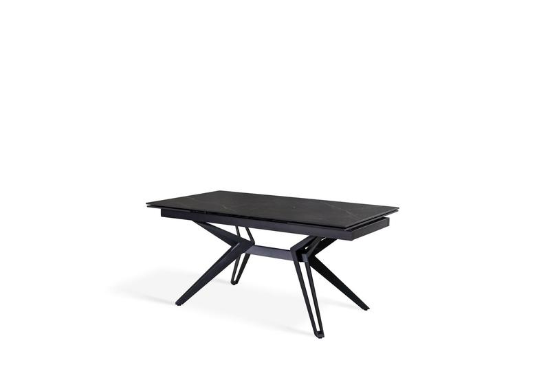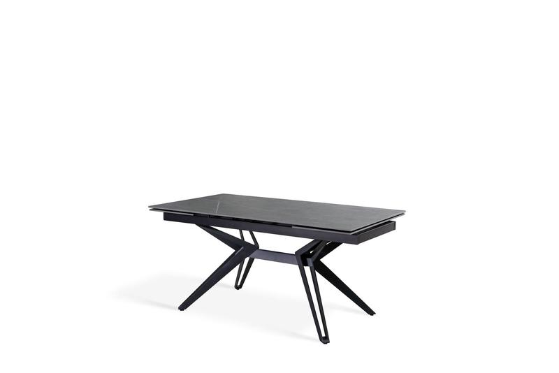 Tavolo da pranzo modello Match 3 con struttura e gambe in metallo verniciato, dotato di 2 allunghe e top in ceramica.