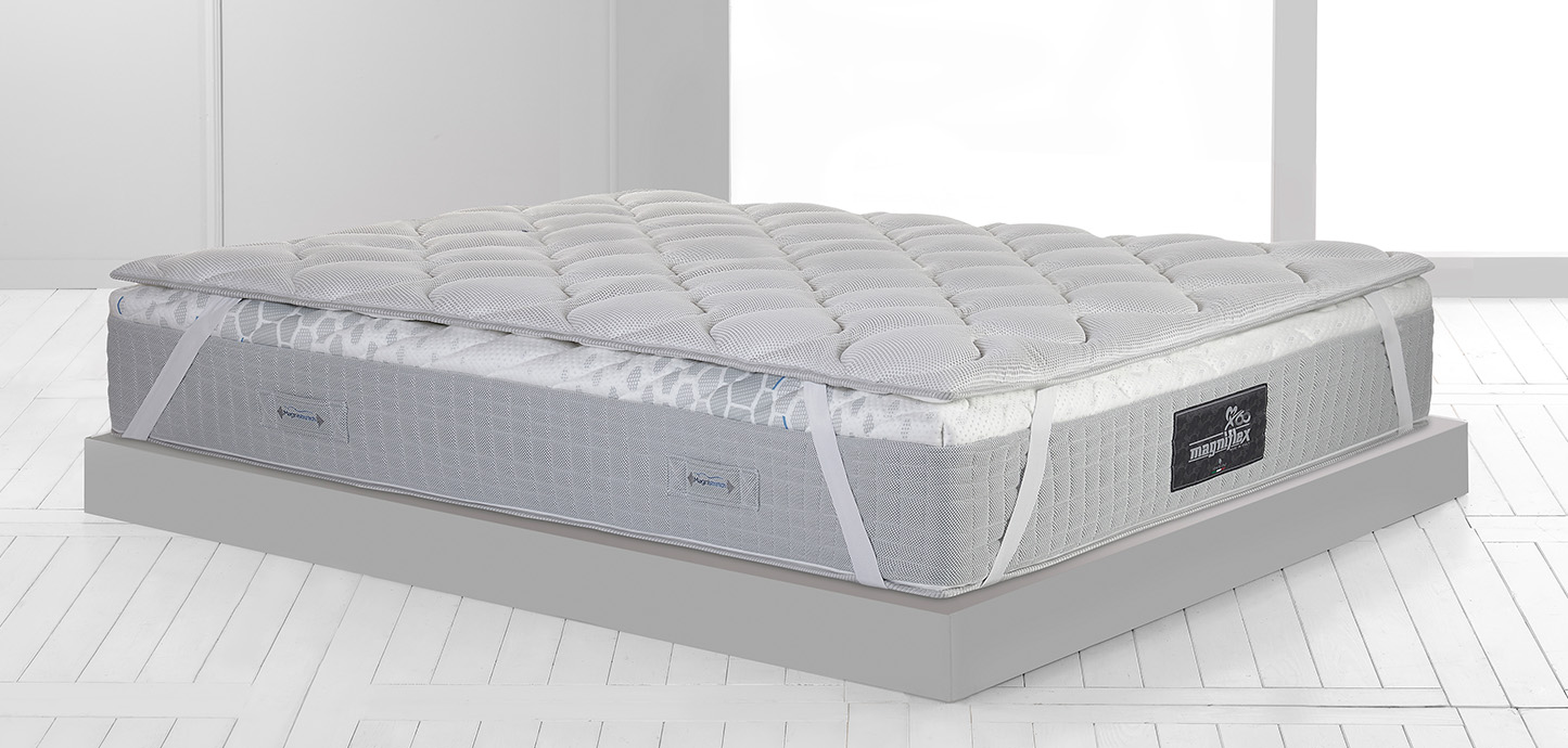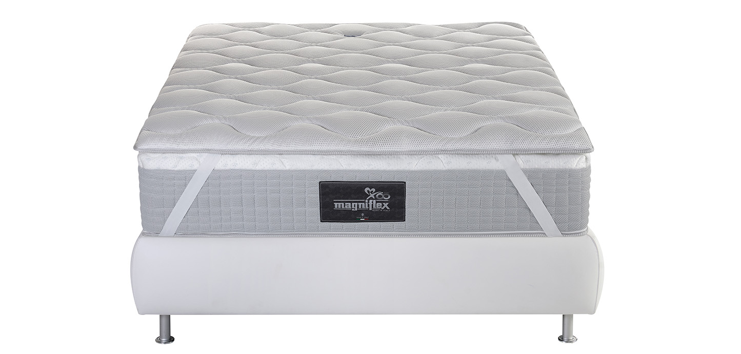 Il Topper Magnicool 3D, con tessuto fresco, traspirante e termoregolatore, nasce per adattarsi perfettamente al corpo e, grazie alla lavorazione massaggiante, rigenera la microcircolazione del corpo con un’azione costante durante il riposo.