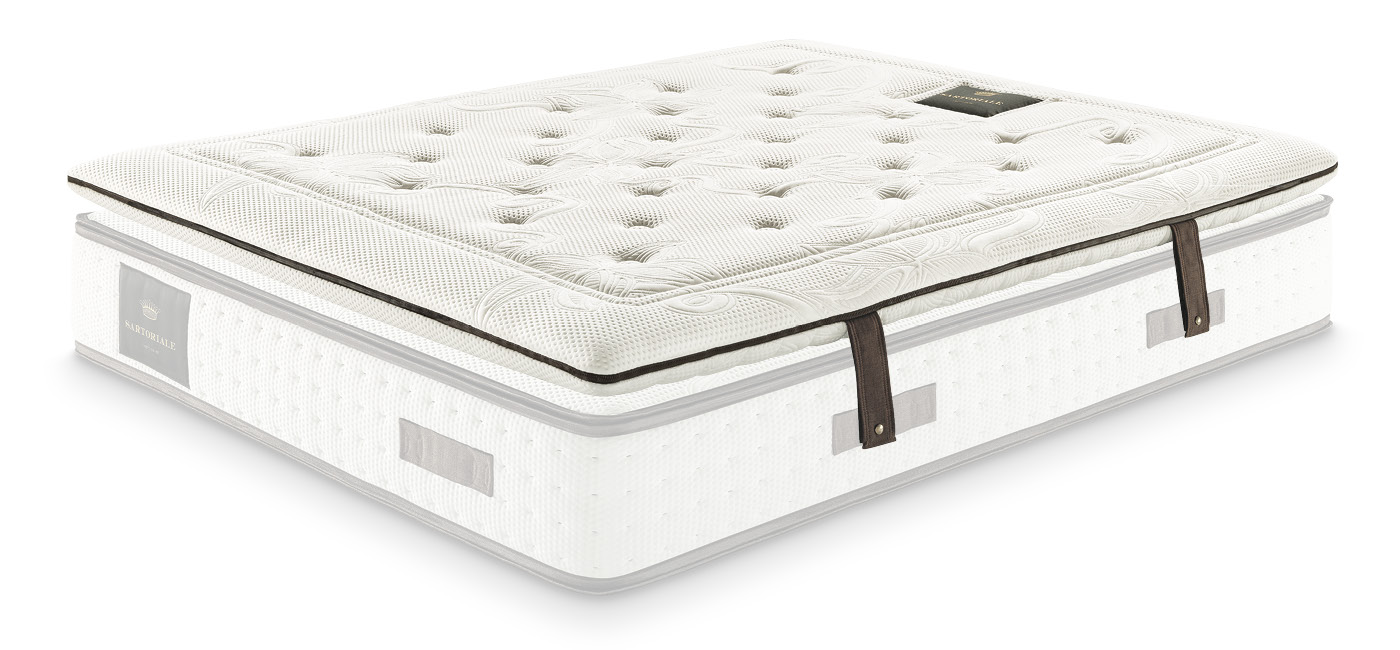 Topper Seta Memory Foam Breeze Sartoriale : Fresca d’estate e confortevolmente accogliente d’inverno. Dalla combinazione tra seta, viscosa e microfibra nasce Seta, il pregiato rivestimento anallergico, che grazie alla lavorazione jaquard ecosoft, risulta ancor più confortevole e avvolgente. L’imbottitura in cotone tecno fibra garantisce un microclima fresco e asciutto. Anallergica e anti acaro.