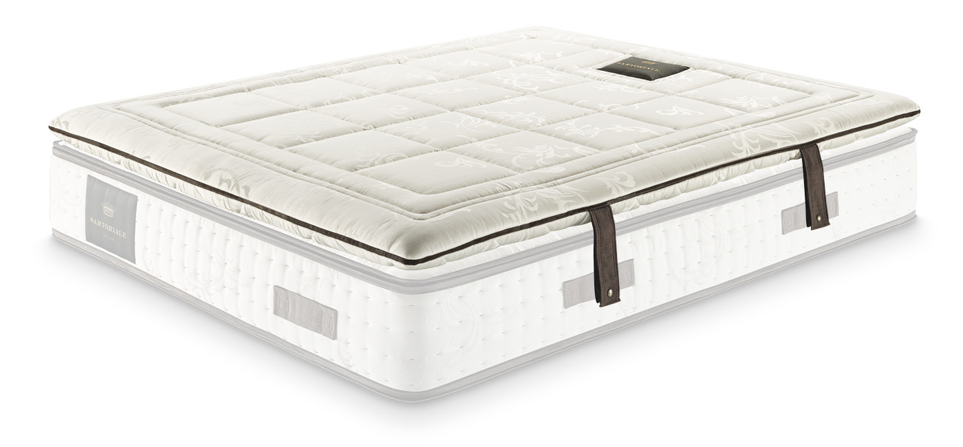 Topper Viscosa Memory Foam Breeze Sartoriale: Una raffinata lavorazione jacquard valorizza questo morbido e lucente rivestimento in pregiata 100% viscosa doppio ritorto, tessuto resistente e traspirante di origine vegetale, che dona una piacevole sensazione di freschezza.
