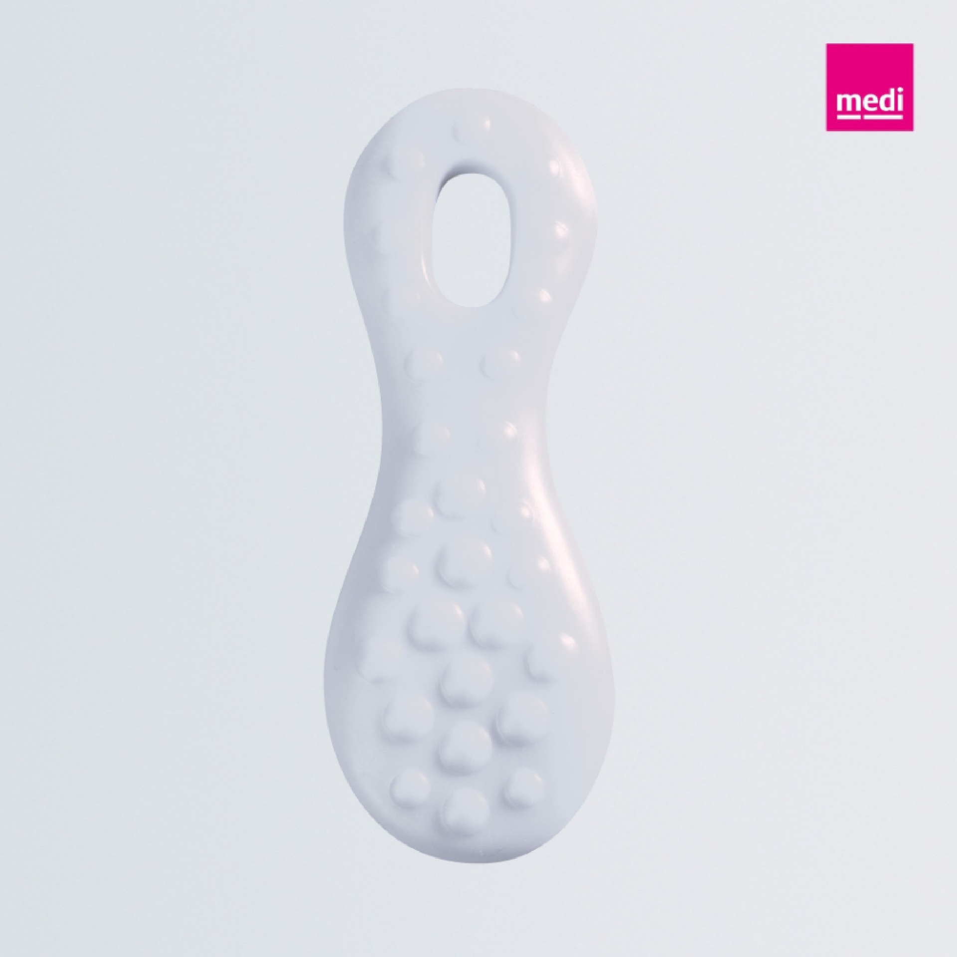 Pressore in silicone integrato lateralmente con scarico trocleare e superficie massaggiante.