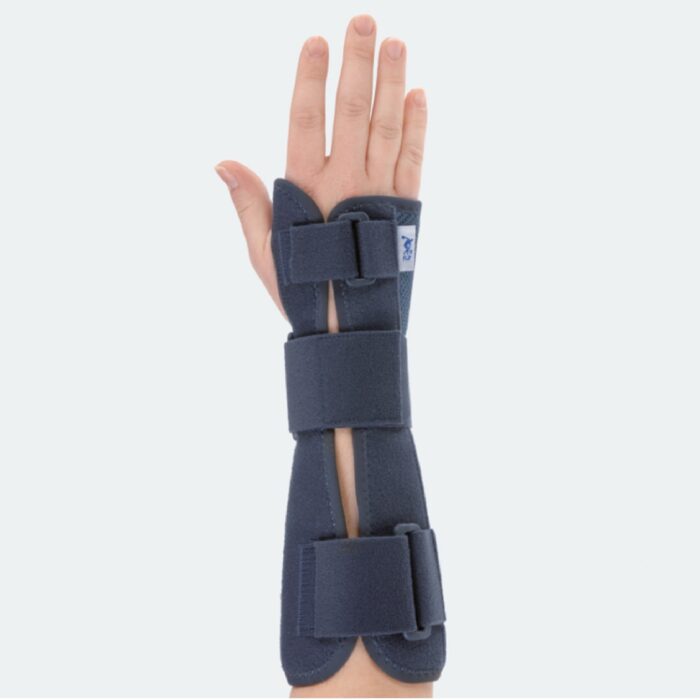 Tutore per polso con steccatura palmare in alluminio modellabile, con rinforzi laterali in polietilene.