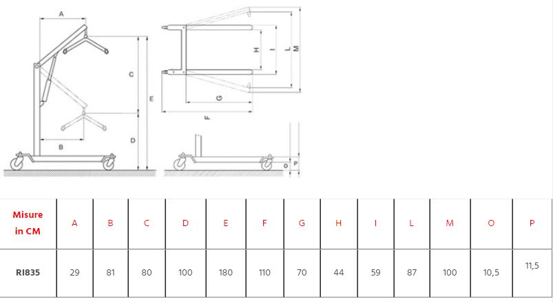 Misure: Lungh. 110 cm, Largh. da 59 a 100 cm. Portata max 180 kg.
